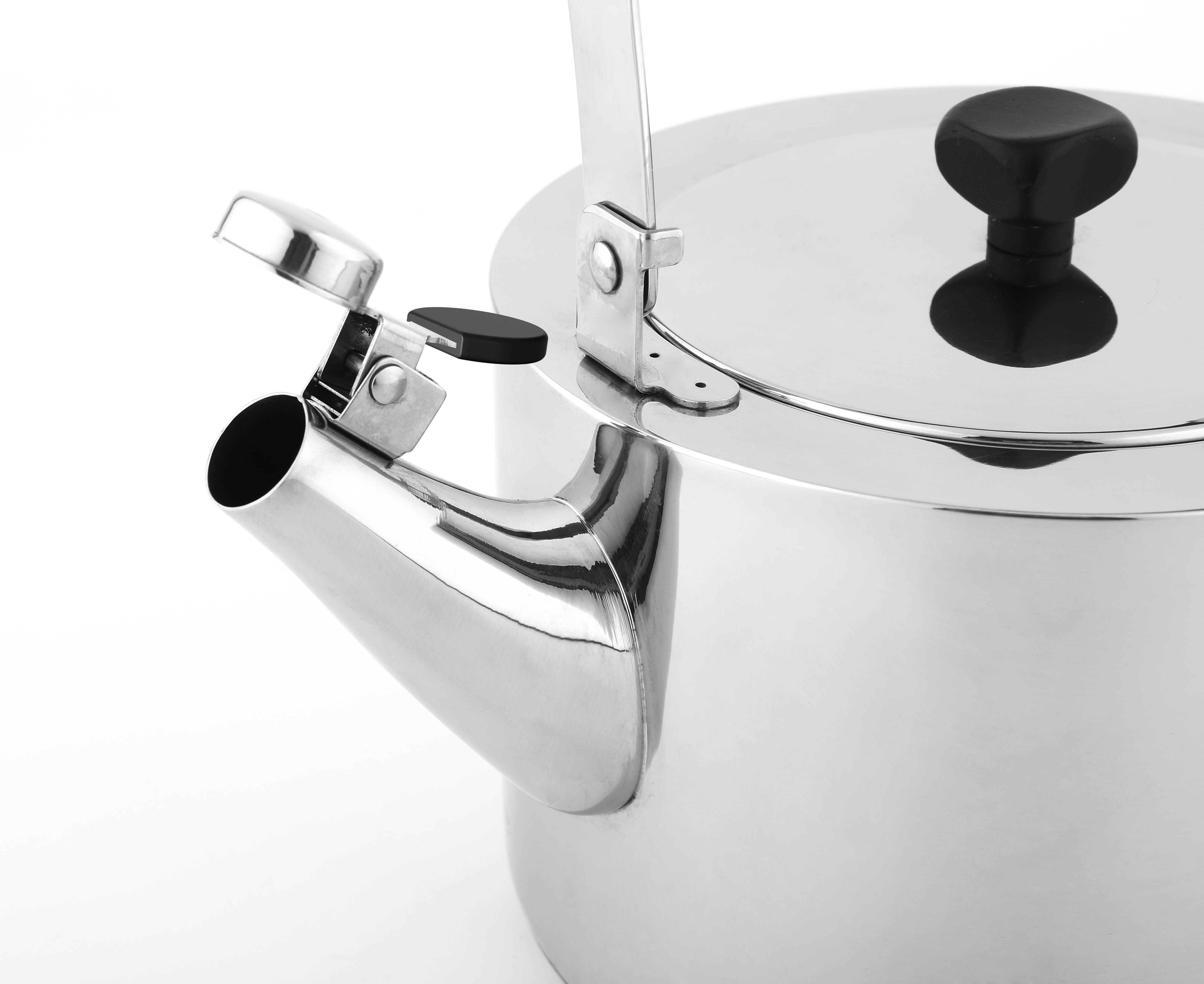 Zewnętrzna powierzchnia czajnika została starannie wypolerowana na wysoki połysk, dzięki czemu prezentuje się stylowo i estetycznie, natomiast wnętrze wykończono matowo, co ułatwia czyszczenie. Dno czajnika składa się z aluminiowego rdzenia (3 mm) oraz warstwy stali nierdzewnej SS430 (0,5 mm) + warstwy stali nierdzewnej wewnętrznej AISI304 (0,8 mm), co zapewnia równomierne rozprowadzanie ciepła i umożliwia użytkowanie na wszystkich rodzajach kuchenek, w tym indukcyjnych.