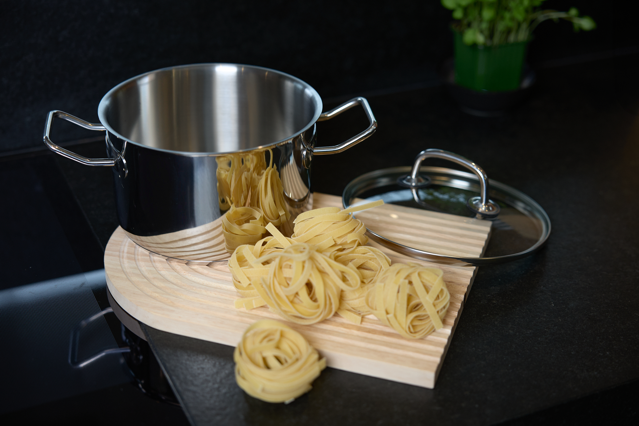 Termoakumulacyjne, trzywarstwowe dno o grubości 4,5 mm zapewnia szybkie nagrzewanie oraz równomierne rozprowadzanie i długotrwałe utrzymanie ciepła. Zakumulowane ciepło umożliwia dokończenie przyrządzania potraw w ciągu 10-15 minut po wyłączeniu płyty, co znacznie zmniejsza zużycie energii grzewczej. W środku garnka znajduje się praktyczna miarka ułatwiająca użytkowanie. Naczynia są dostosowane do wszystkich rodzajów kuchenek: elektrycznej, gazowej, ceramicznej oraz indukcyjnej. Nie są przeznaczone do użytku w piekarniku.