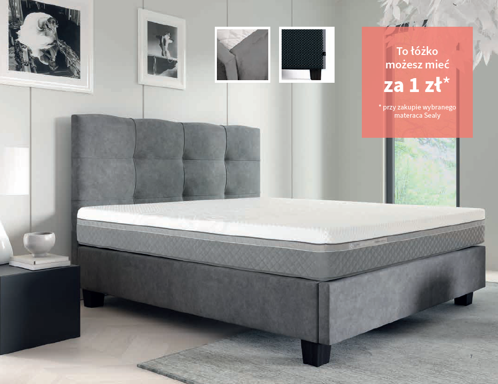 Łóżko dostępne w ofercie specjalnej za 1 zł przy zakupie materaca Sealy w rozmiarze 140, 160 i 180x200 cm.