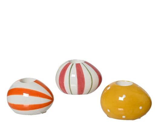 Świecznik dolomitowy jajko w różowo zielone paski H: 4,6 cm 1 sztuka