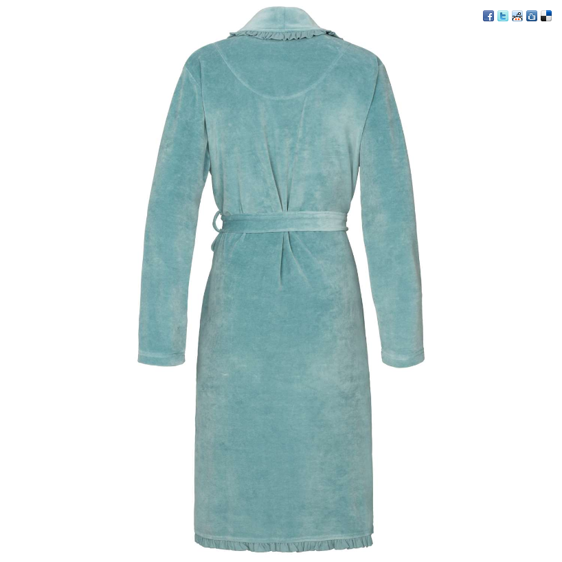 Szlafrok jest taliowany i został wykończony elegancką bawełnianą falbanką. Każda kobieta wygląda w nim bardzo atrakcyjnie. Możliwość regulacji paska po bokach na 2 wysokościach zapewni odpowiednie dopasowanie w talii.