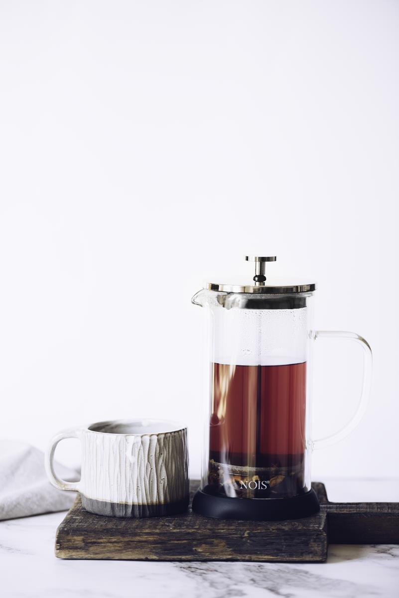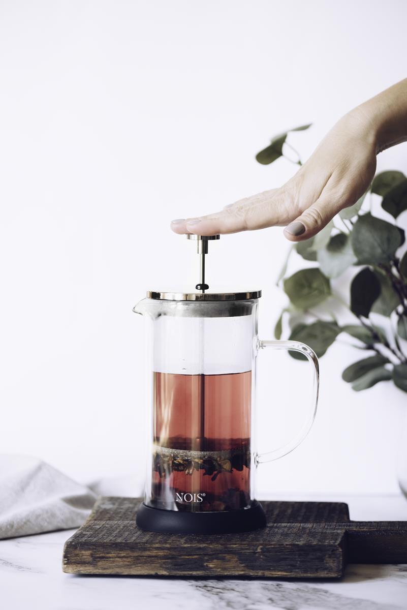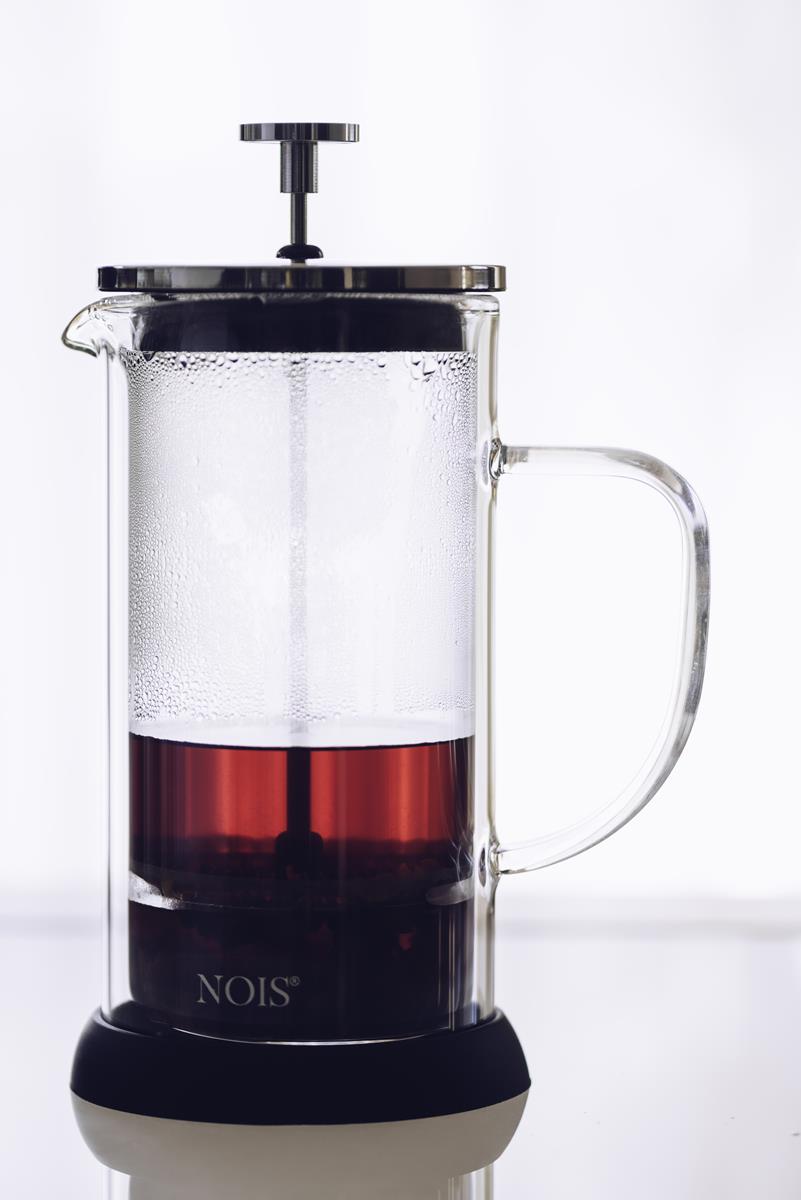 Zaparzacz firmy "NOIS" to doskonałe rozwiązanie na jesienne i zimowe wieczory. Przeznaczony jest do zaparzania herbaty, kawy ale i innych napojów ziołowych. Wykonany został z najwyższej jakości szkła, które jest odporne na wysokie temperatury. Szkło o podwójnych ściankach dłużej utrzymuje napój ciepły, a zewnętrzna ścianka i tak jest chłodna. Szklany zaparzacz wyposażony jest w metalową pokrywkę, a stalowy tłok zapobiega przedostawaniu się fusów do herbaty. Idealny do codziennego użytku oraz jako prezent.