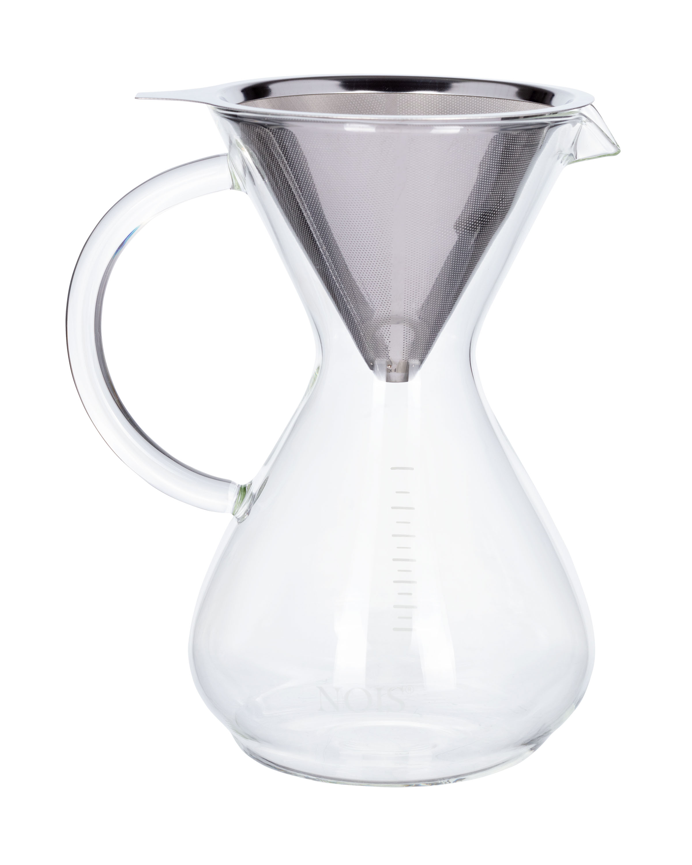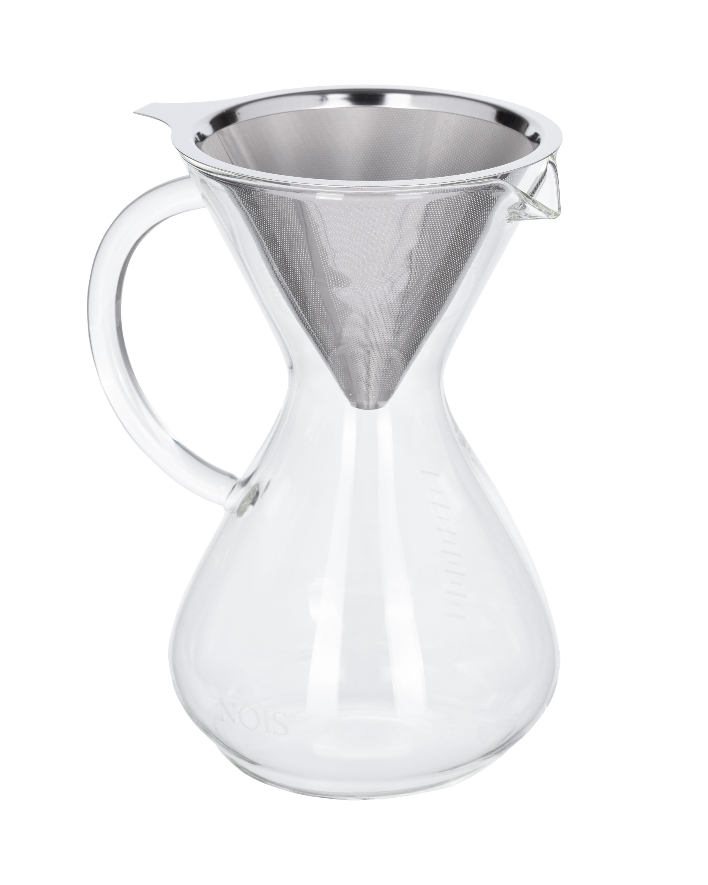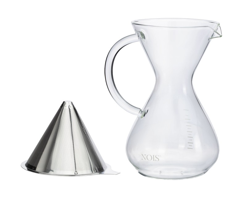 Dripper do kawy firmy "NOIS" to idealne rozwiązanie na jesienne i zimowe wieczory. Dzięki niemu zaparzysz szybko i z łatwością pełną aromatu kawę. Dzbanek został wykonany z wysokiej jakości szkła borokrzemowego. Dzięki temu odporny jest na wysokie temperatury. Zaparzacz posiada stalowy, wyciągany filtr. Kształt klepsydry pozwala wygodnie przelewowym sposobem parzyć kawę. Dzbanek można myć w zmywarce natomiast filtr ze stali nierdzewnej myjemy ręcznie. Dzbanek bez filtra można używać do wody czy soku.