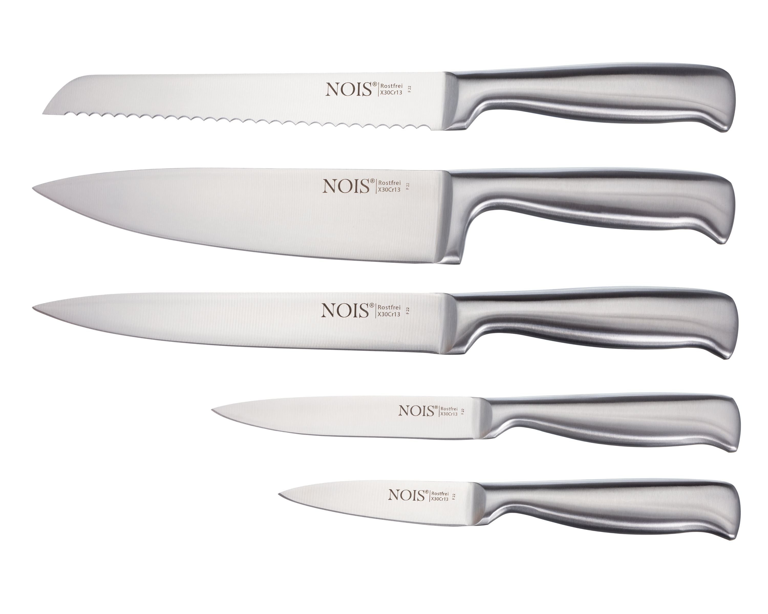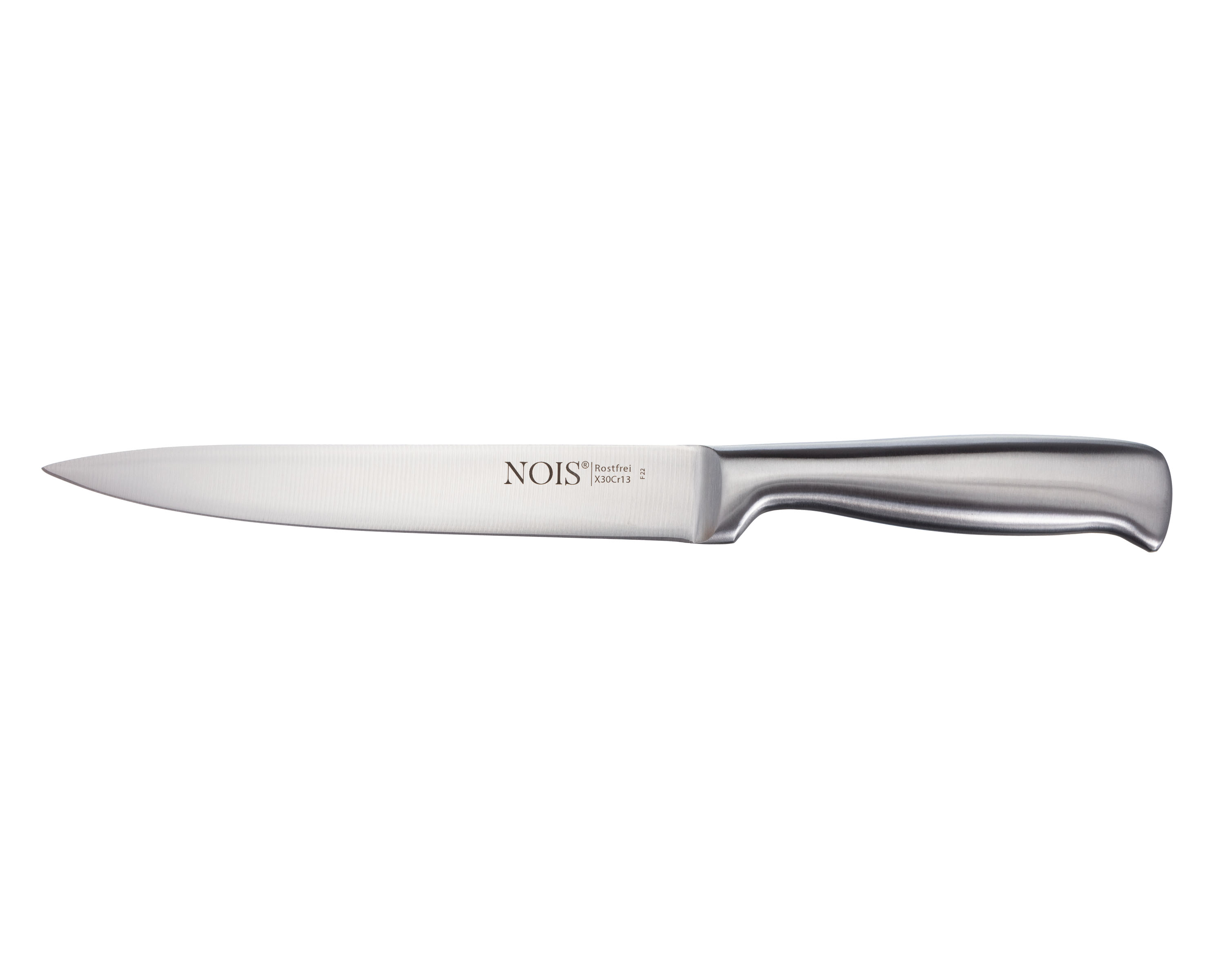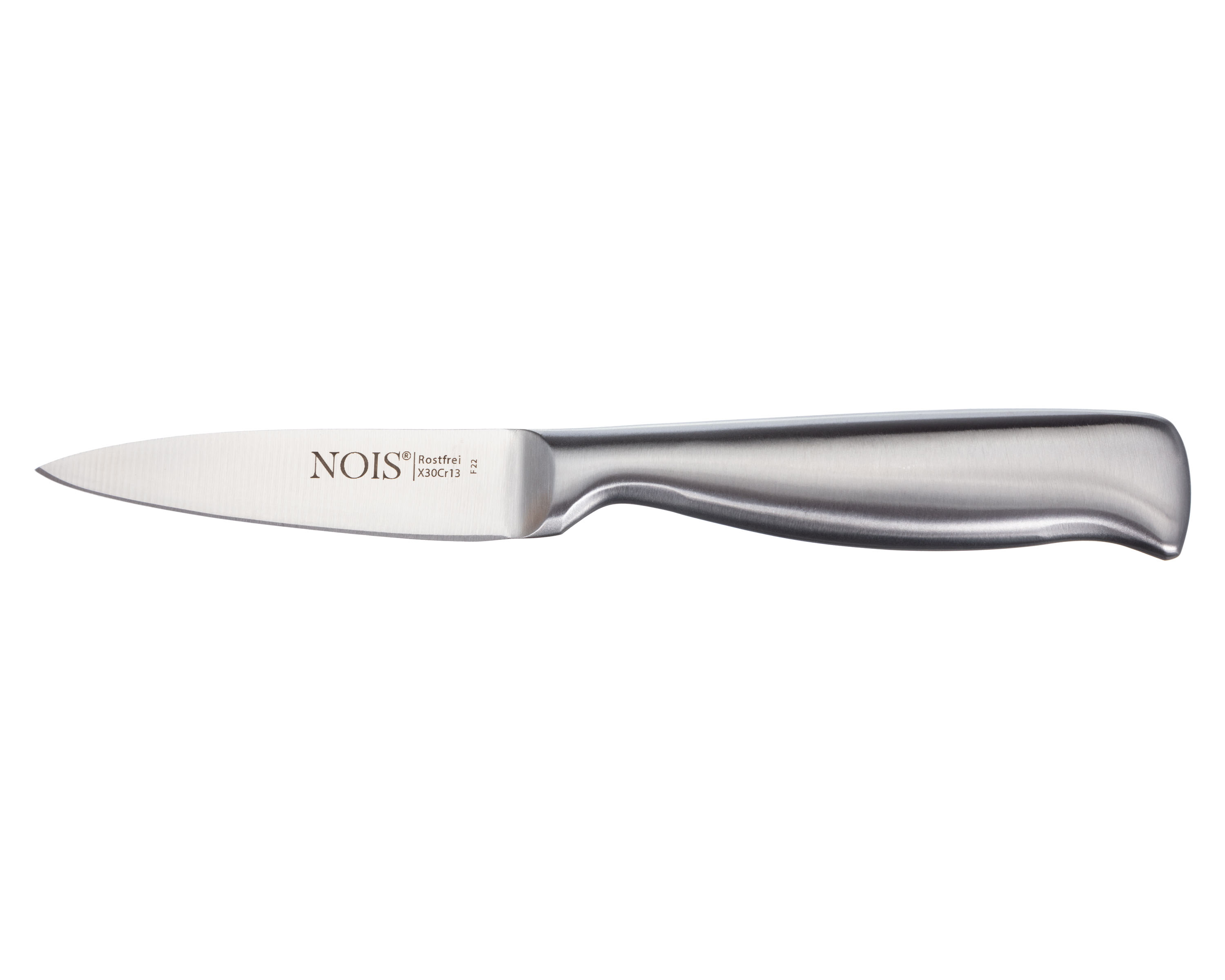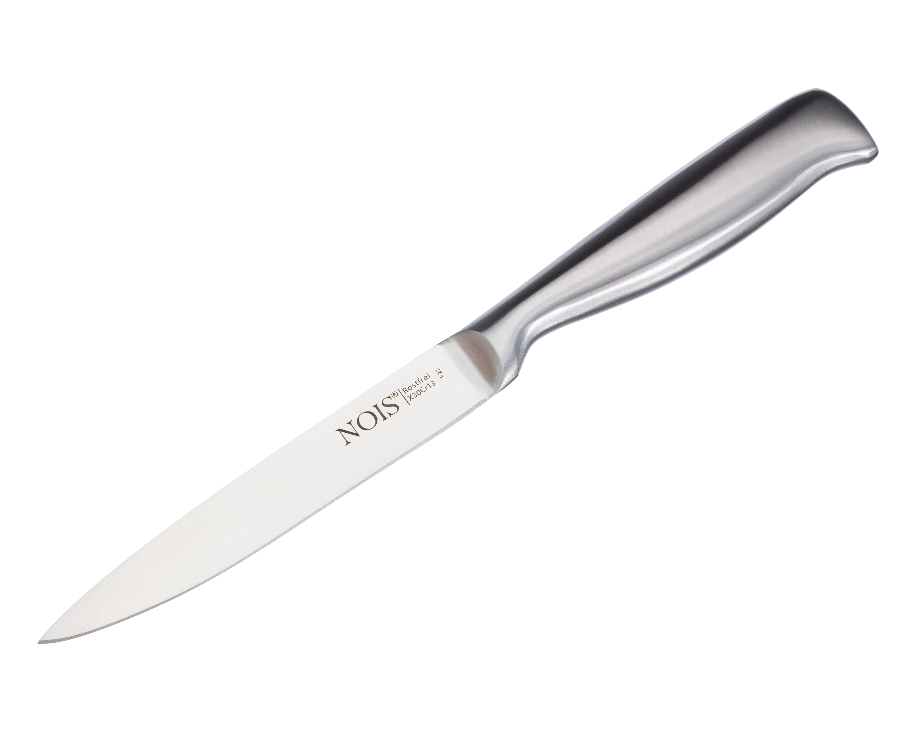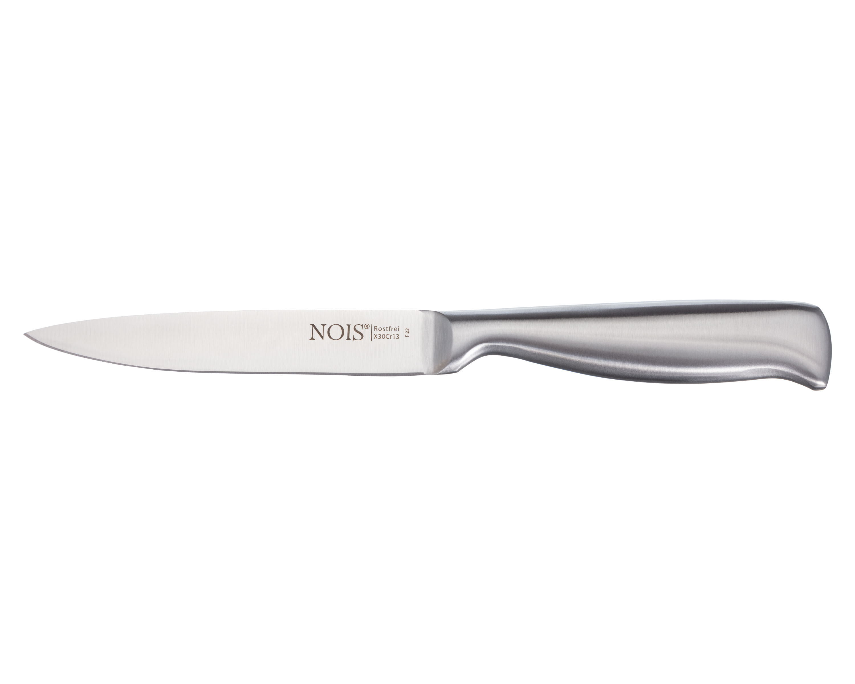 Zestaw CARSO marki "NOIS" składa się z praktycznych i stylowych noży, które pomogą przygotować ci pyszne śniadanie, obiad i kolację. Noże wykonane zostały z walcowanej stali nierdzewnej X30CR13 (zawierającej 13% chromu) o twardości 52 +/- 2 HRC. Konstrukcja i kształt noża zapewniają łatwość użytkowania. Ostre i cienkie ostrze z łatwością przecina produkty o różnej twardości. Gładka, starannie wypolerowana powierzchnia ostrza umożliwia precyzyjne cięcie bez zniekształcania produktów. W miejscu łączenia ostrza z rękojeścią nie gromadzą się bakterie ani brud. Zgrubienie między ostrzem a rękojeścią noża zapewnia bezpieczne oparcie dla palca wskazującego, a także poprawia równowagę pozwalając na długą pracę bez zmęczenia. Noże te łatwo naostrzyć.
