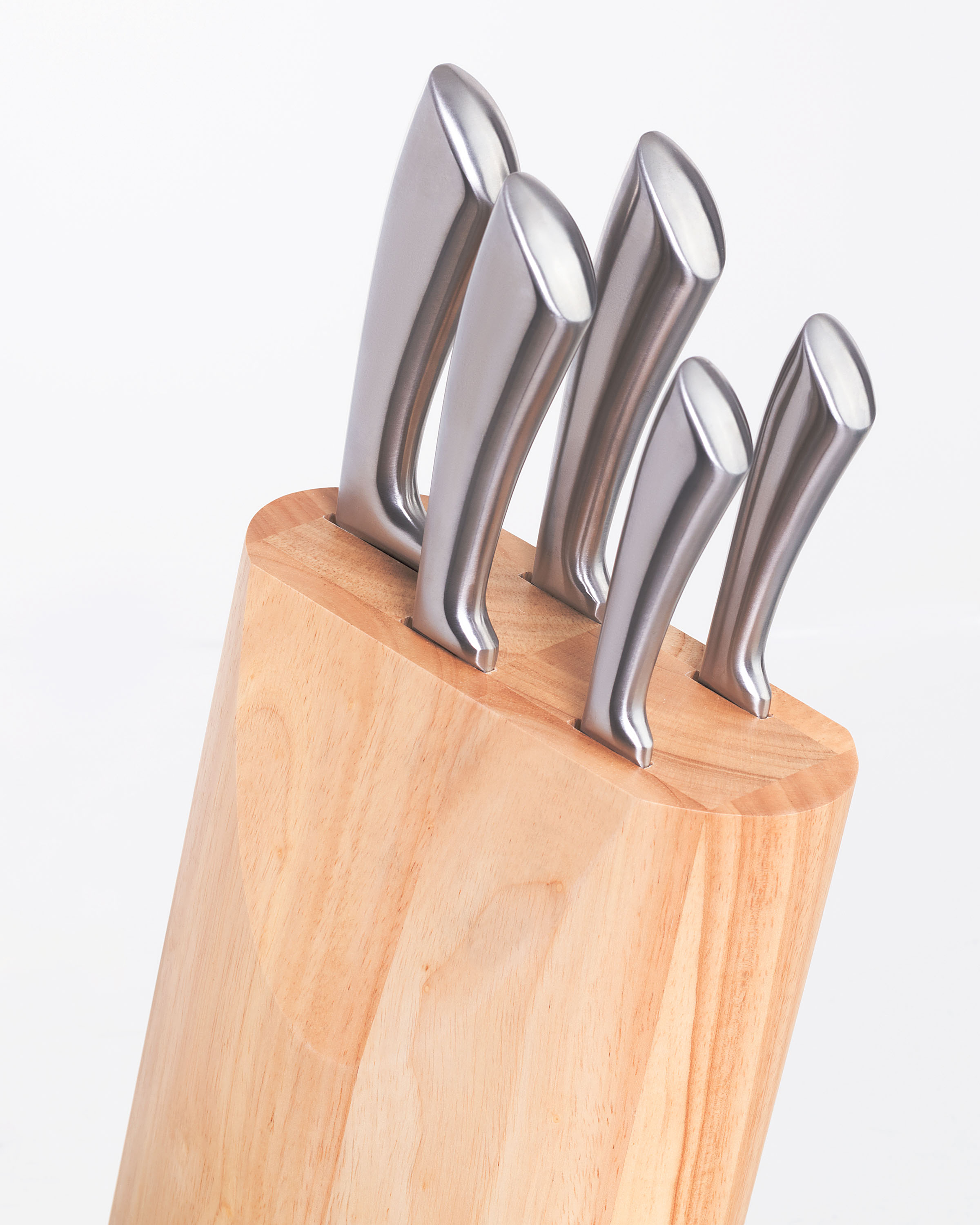 Zestaw LIBRA marki "NOIS" składa się z praktycznych i stylowych noży, które pomogą przygotować ci pyszne śniadanie, obiad i kolację. Noże wykonane zostały z walcowanej stali nierdzewnej X30CR13 ( zawierającej 13% chromu) o twardości 52 +/- 2 HRC. Konstrukcja i kształt noża zapewniają łatwość użytkowania. Ostre i cienkie ostrze z łatwością przecina produkty spożywcze o różnej twardości. Gładka i starannie wypolerowana powierzchnia ostrza umożliwia precyzyjne cięcie bez zniekształcania produktów. W miejscu łączenia ostrza z rękojeścią nie gromadzą się bakterie ani brud. Zgrubienie między ostrzem a rękojeścią noża zapewnia bezpieczne oparcie dla palca wskazującego, a także poprawia równowagę pozwalając na długą pracę bez zmęczenia. Noże te łatwo naostrzyć.