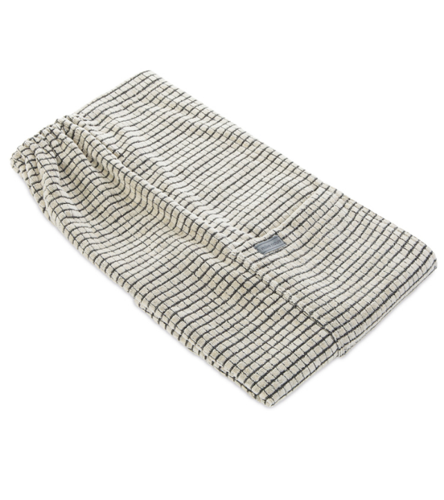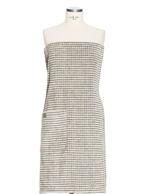 Spódnica do sauny damska Eden marki Möve. Wyjątkowo chłonna dzięki tkaninie z bawełny i lnu. W czarną kratkę na beżowym tle. Wygodna kieszeń z boku.