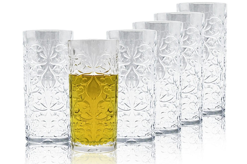 Szklanki wysokie, longi zostały wykonane z wysokiej jakości szkła kryształowego, ekologicznego (w 100% nadaje się recyklingu). Szkło kryształowe marki RCR jest idealnie przejrzyste, wyjątkowo błyszczy i wydaje przyjemne dźwięki np. podczas toastu. Wysokie szklanki idealnie nadają się do wody, soków czy drinków.