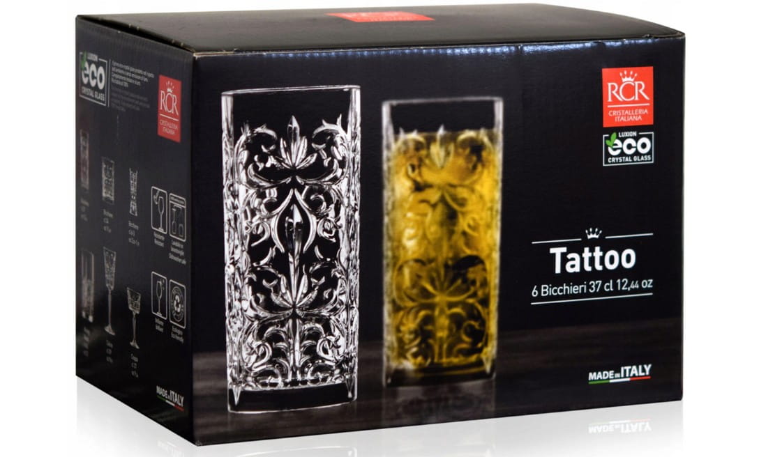 Szklanki kryształowe rcr tattoo do napojów 370 ml
